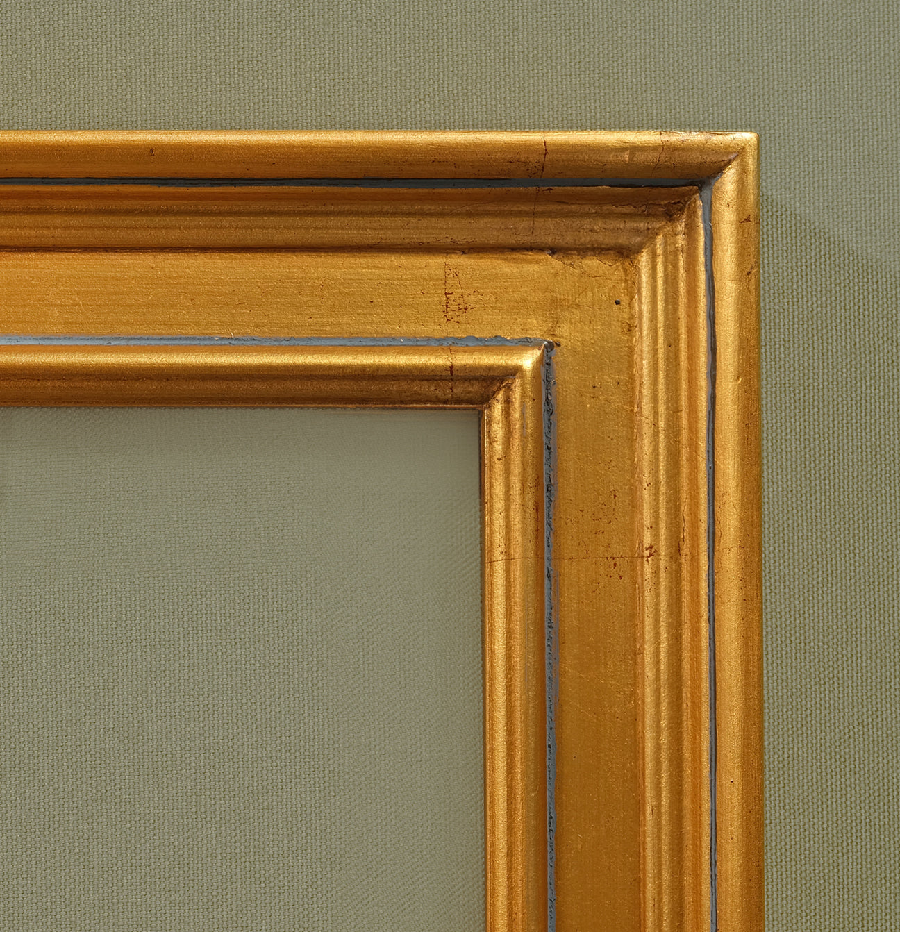 All wood, cut and joined closed corner frame. Rich, warm gold finish.
